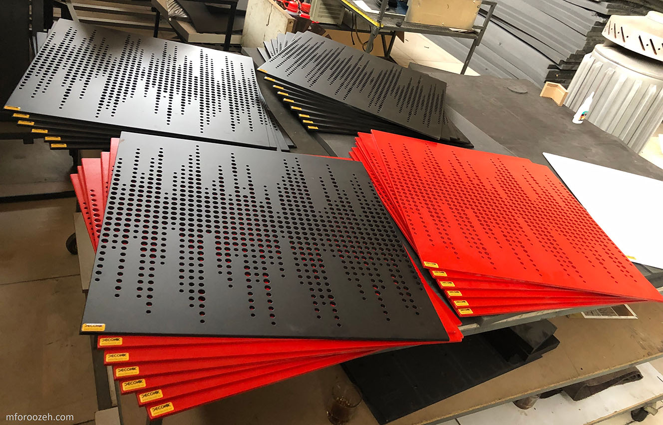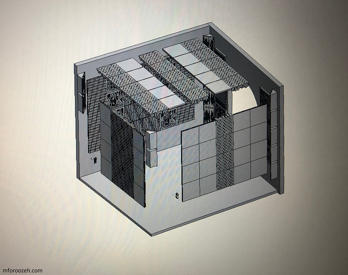 I designed the 2D and 3D plans of these panels in AutoCad and SolidWorks, respectively, and then rendered the whole studio in Luxion Keyshot. The panels are mostly made of polyurethane foam and wood, both of which was cut by CNC machines.